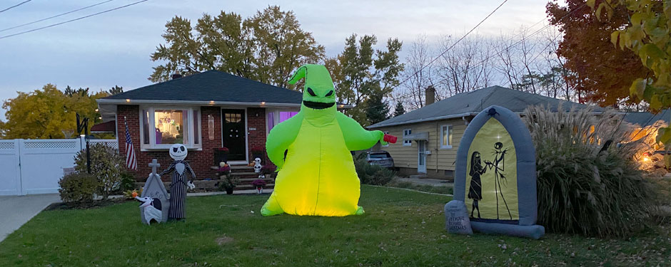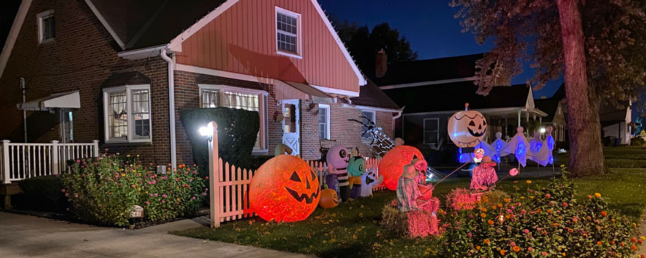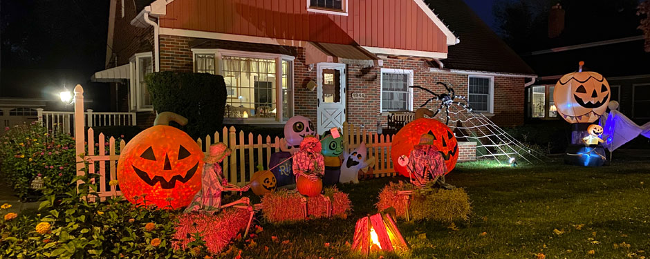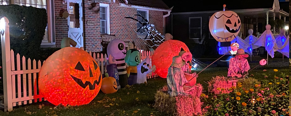 Have you noticed that things are getting a little creepy around the Village? In addition to the fall pumpkins, colorful mums and rustling corn stalks, there are a whole host of strange creatures that come to life when it starts getting dark. Here are a few of the memorable Halloween decorations from the past few years. The amazing inflatable sculptures are always dramatic in their size, color and lighting. The homemade themes, however, are still our favorites. They’re wonderfully creative and must have been a lot of fun to make!